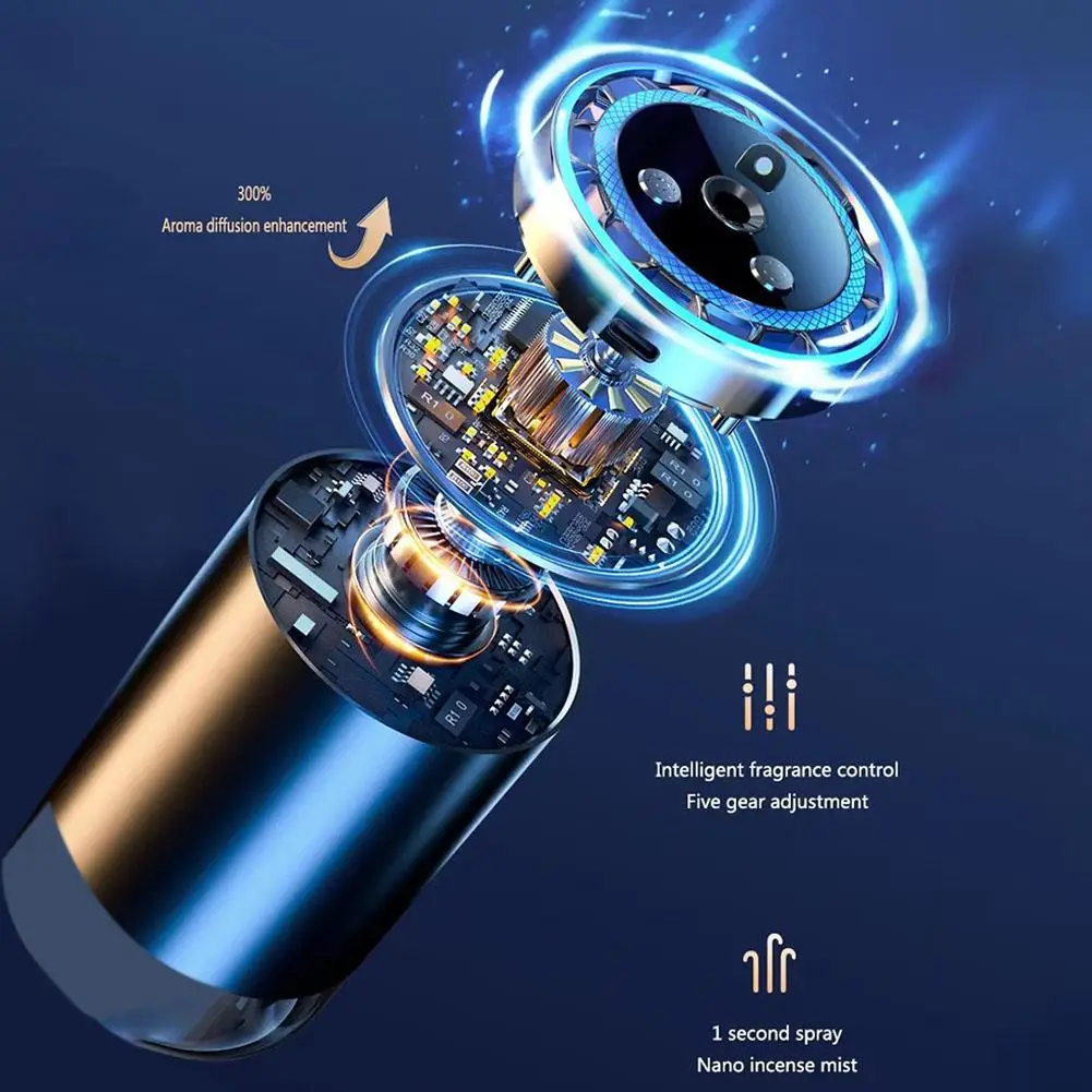 Um sensor integrado de alta precisão detecta de forma inteligente o ambiente do carro e ajusta automaticamente a frequência e a concentração da liberação da fragrância, eliminando a necessidade de operação manual e garantindo um ar fresco e agradável no interior.